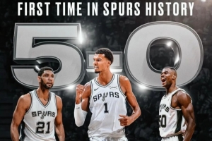 很難想象,在馬刺輝煌的球隊(duì)歷史上,竟從未有過(guò)5連勝開(kāi)局,而那個(gè)夜晚,年僅21歲的文班亞馬,用27分、18個(gè)籃板、6次助攻和5次封蓋的華麗數(shù)據(jù),率隊(duì)107-101力克熱火,將戰(zhàn)績(jī)改寫(xiě)為5勝0負(fù),就此書(shū)寫(xiě)新的歷史。