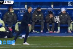 羅德里戈打入制勝球救主時,場邊的皇馬主帥阿隆索瘋狂揮拳慶祝,冷靜后他急忙指揮部署。