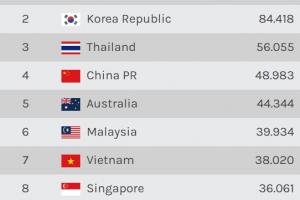 體育資訊12月15日訊 據數據網站footyrankings統計,在最新的亞足聯俱樂部賽事系數分排名中,中超系數分48.983,落后泰超已達到7分,并且領先身后澳超的優(yōu)勢只剩下4.6分。