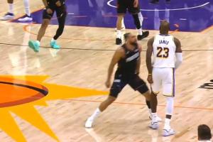 比賽最后時(shí)刻,狄龍飚中三分后不滿被詹姆斯撲倒,起身與詹姆斯對撞吃T,累積兩T被驅(qū)逐。