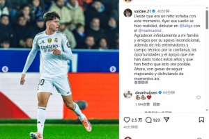 體育資訊12月15日訊 皇馬小將巴爾德佩尼亞斯今天更新Instagram,談到自己的西甲首秀。