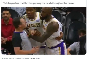 體育資訊12月16日訊 湖人昨日客場(chǎng)116-114險(xiǎn)勝太陽(yáng),比賽中詹姆斯對(duì)裁判進(jìn)行推搡和大喊大叫,但沒(méi)有吃到技犯引起熱議。
