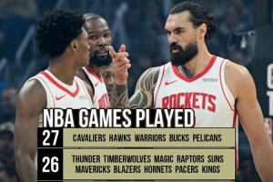 “火箭目前僅打22場,聯(lián)盟最少,而有5支球隊打了27場比賽?!?/p>