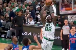 吐舌頭提前慶祝!科塔持球突破 墊步起飛雙手滑翔暴扣!