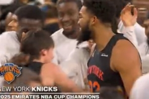 奪冠領獎金咯!尼克斯球員場內(nèi)瘋狂慶祝&戴上冠軍帽