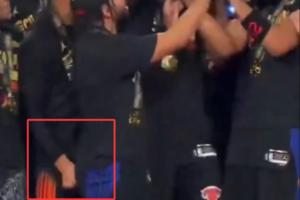 你在干嘛?大家都摸獎杯呢 哈特偷掐布倫森屁股 大頭立馬回頭