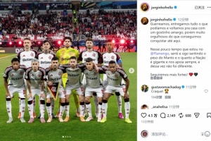 弗拉門戈中場若日尼奧社媒曬出首發(fā)球員的合照,配文:“我們奮力拼搏,傾盡全力,雖然帶著些許遺憾踏上歸途,但仍對迄今取得的成就感到無比自豪。”