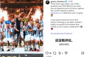 國際足聯(lián)主席因凡蒂諾社媒曬出視頻,回顧這場經典比賽,他寫道:“三年前的今天,史上最精彩的世界杯決賽之一,阿根廷vs法國——吸引了全世界的目光,最終阿根廷隊舉起了那座標志性的獎杯!”