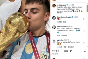 體育資訊12月19日訊 迪巴拉今天更新Instagram,紀(jì)念阿根廷世界杯奪冠三周年。