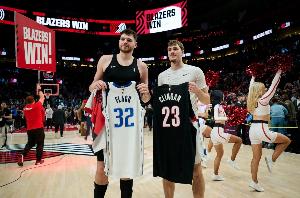 體育資訊12月31日訊 昨日開拓者主場(chǎng)125-122險(xiǎn)勝獨(dú)行俠,賽后克林根和弗拉格交換了球衣。
