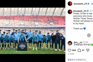 體育資訊12月31日訊 今日,韓國后衛(wèi)樸志洙更新社媒,向武漢三鎮(zhèn)告別。
