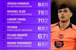 體育資訊12月31日訊 數據網站Squawka盤點了2025年五大聯(lián)賽完成進攻三區(qū)傳球次數榜,其中佩德里居首,具體如下: