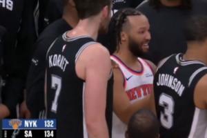 體育資訊01月01日訊 在今日尼克斯不敵馬刺的最后時刻,尼克斯落后5分,布倫森投進(jìn)了一個超高難度的壓哨三分球,最終憾負(fù)2分。
