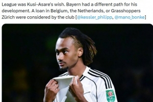 體育資訊1月2日訊 據(jù)記者Philipp Kessler報(bào)道,富勒姆考慮在本月提前終止拜仁18歲前鋒庫(kù)西·阿薩雷的租借合同。