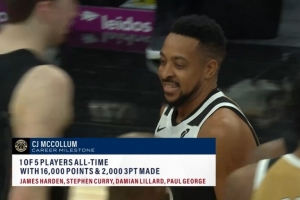 里程碑!麥科勒姆達(dá)成生涯16000分+2000記三分成就 歷史第五人