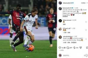 莫德里奇社媒曬出比賽照片,并寫道:“精彩的團(tuán)隊(duì)勝利!為新年開了個(gè)好頭。祝大家新年快樂!加油米蘭?!?/p>