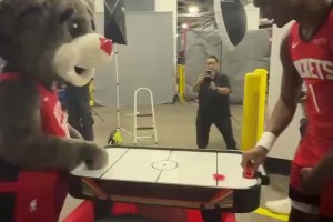 阿門跟火箭熊玩桌球游戲 憑借著出色的防守贏得比賽~