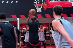 你倆訓練二人轉(zhuǎn)?。⌒≠Z巴里點飛申京,再助攻KD中投命中