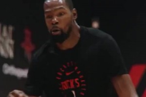 備戰(zhàn)新賽季 期待!杜蘭特身穿火箭訓(xùn)練T恤在球館訓(xùn)練~