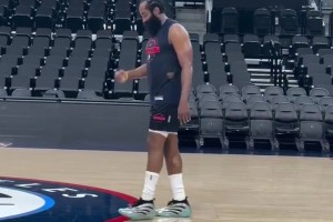 身先士卒!哈登是今天快船訓練到最晚的球員,整個球場只剩他一個