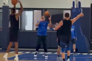 真準(zhǔn)??!克萊和拉塞爾在訓(xùn)練后進(jìn)行三分PK