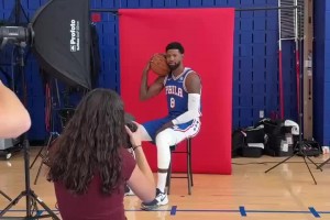 新賽季能回暖嗎喬治出席76人媒體日,拿球怒吼擺造型~