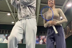 付豪跟妻子在網(wǎng)球場跳雙人舞:接王教練下課