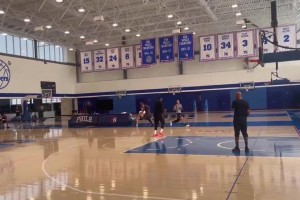 保羅·喬治和賈里德·麥凱恩一起進(jìn)行了全場跑動接球三分訓(xùn)練...