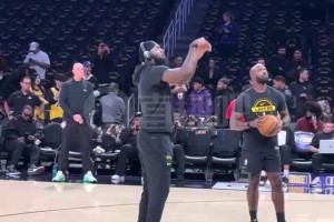 直播吧現(xiàn)場直擊:詹姆斯賽前罰球訓練,今日將迎來復出