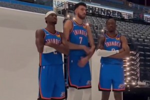 加起來(lái)8.2億的超級(jí)組合!雷霆新三少媒體日同框合影