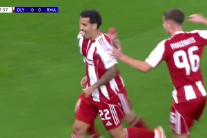 皇馬客場丟球!奧林匹亞科斯中場斷球!奇奎尼奧抽射得手!