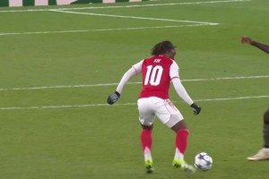 可惜!埃澤精彩停球+傳球策動!前插禁區(qū)射門打偏了!