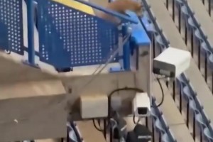 切爾西歐冠賽前,斯坦福橋看臺(tái)上一只狐貍出沒