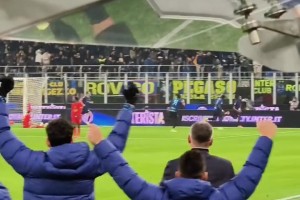 整齊劃一!國米替補席上的主力們齊刷刷陪皮奧秀二頭肌