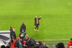 薩拉赫賽后獨(dú)自停留在場邊,并向球迷長時間鼓掌揮手