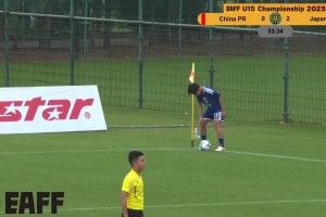 場邊的中國球迷為U15敲鼓吶喊:加油中國隊(duì),加油中國隊(duì)