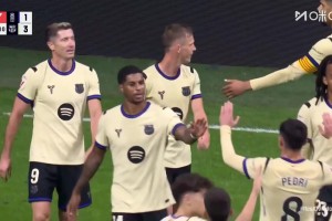 巴薩3-1鎖定勝局!拉什福德角球送助攻!阿勞霍躍起頭球破門!