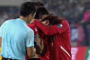 遺憾!南通隊(duì)球員李賢成失點(diǎn)丟冠后痛哭,主裁馬寧上前安慰