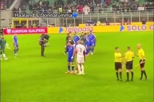悲喜兩重天!哈蘭德賽后擁抱安慰多納魯馬,之后才加入挪威慶祝!