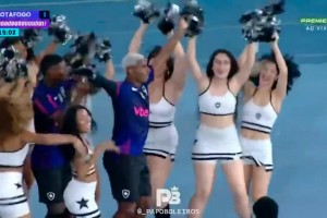 來快活?。∏騿T進(jìn)球后,與啦啦隊(duì)小姐姐們一起跳舞慶祝