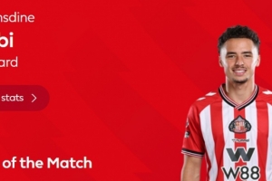 打進絕殺,英超官方:塔爾比當選桑德蘭2-1切爾西全場最佳球員