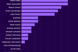 切爾西本賽季英超創(chuàng)造機(jī)會(huì)榜:內(nèi)托、庫(kù)庫(kù)各14次,詹姆斯12次