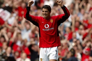 2003年11月1日,C羅在曼聯(lián)對(duì)陣樸茨茅斯的英超比賽中替補(bǔ)出場(chǎng),傳射建功,以任意球破門(mén)斬獲曼聯(lián)生涯處子球。