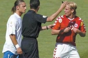 在2004年歐洲杯首輪小組賽,意大利0-0戰(zhàn)平丹麥。比賽中托蒂多次被犯規(guī)后失去冷靜,對丹麥球員鮑爾森吐口水。賽后托蒂被追加禁賽3場,而意大利也在隨后的小組賽未能出線。托蒂成為了意大利從歐洲杯出局的最大責任人。