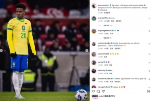 埃斯特旺也在社媒曬出本場照片,配文寫道:“為每一次機會感謝上帝,能夠代表巴西國家隊出戰(zhàn)一直是一份榮譽!”