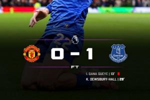 體育資訊11月25日訊 英超第12輪最后一場(chǎng)較量,曼聯(lián)0-1不敵十人埃弗頓。
