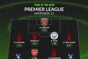 WhoScored英超第12輪最佳陣容