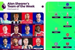 體育資訊11月26日訊 英超第12輪戰(zhàn)罷,阿蘭·希勒評(píng)本輪最佳陣容,皮克福德、埃澤、摩根·羅杰斯在列。