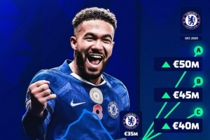德轉(zhuǎn)預(yù)熱里斯·詹姆斯(目前3500萬(wàn)歐)最新身價(jià):