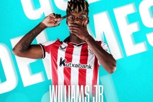 西甲第12輪,畢爾巴鄂競技對陣皇家奧維耶多的比賽,上半場第25分鐘,尼科-威廉姆斯一條龍破門:尼科在邊路得球后,帶球連續(xù)突破連過3人,突入禁區(qū)后踩單車小角度一腳抽射爆桿破門,技驚四座。